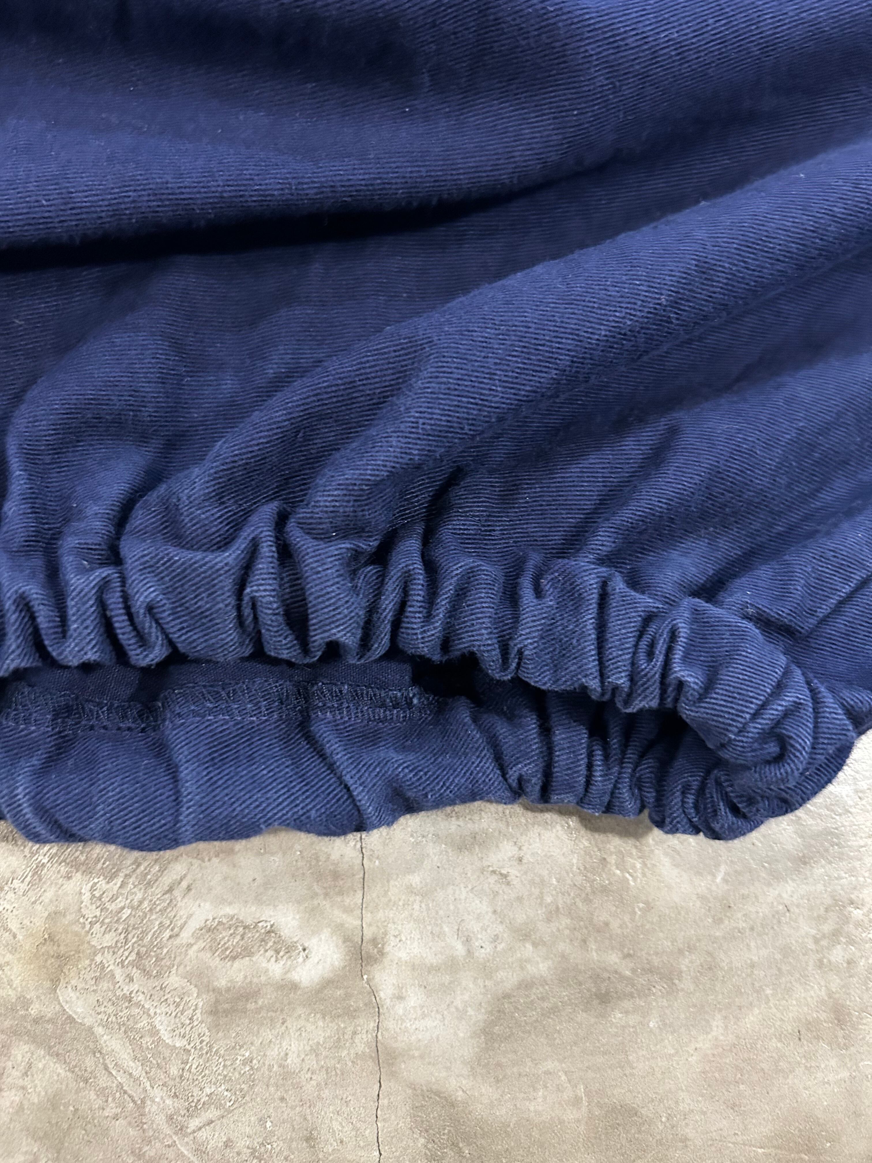 こちらの個体はシンプルなネイビーカラーで定番アイテムです。ゆったりした肩周りに、短めの丈、裾はゴムで絞られています。特徴的なのは首元の汗止めの布でこれが着用時にいいポイントになります。