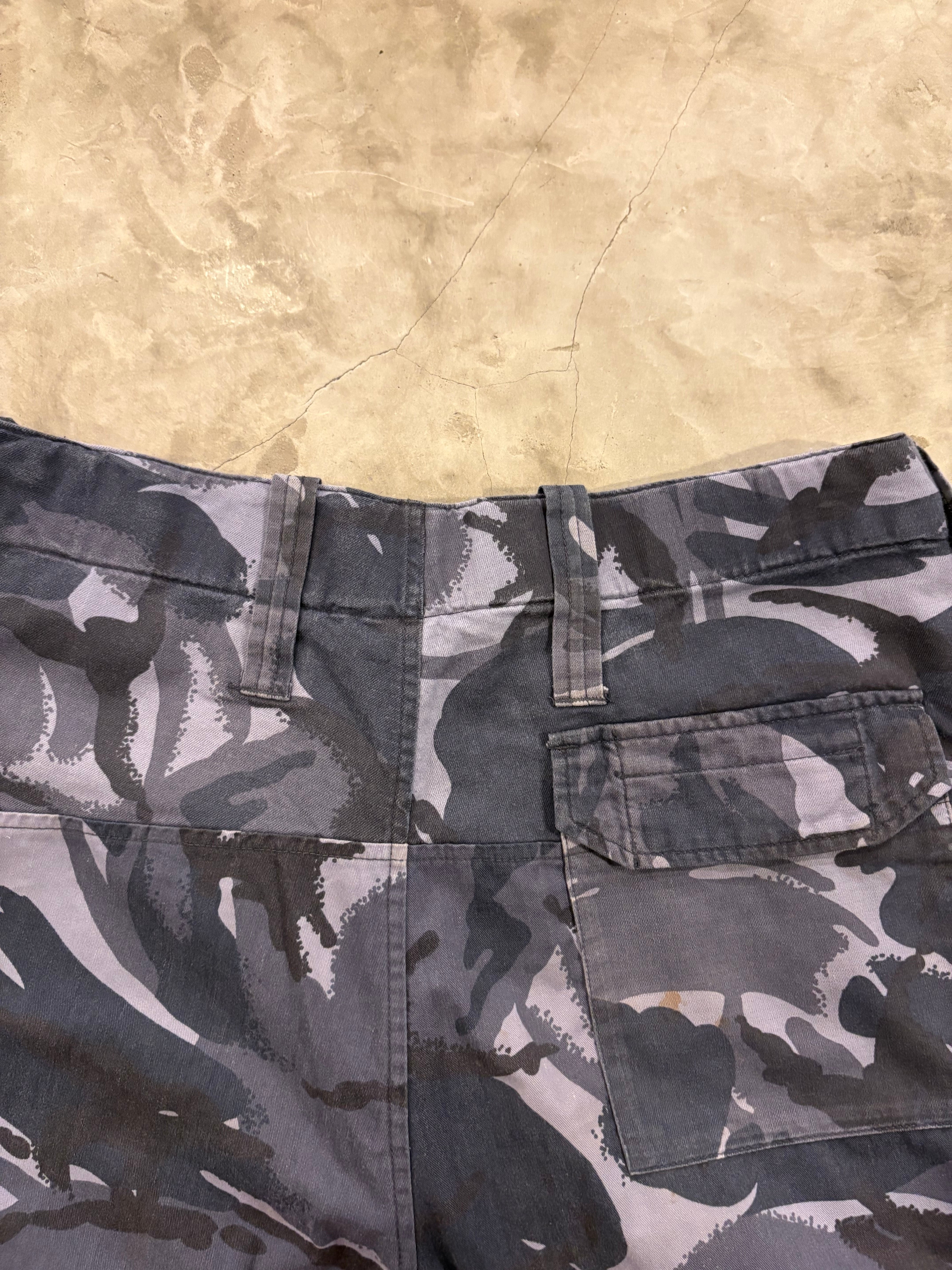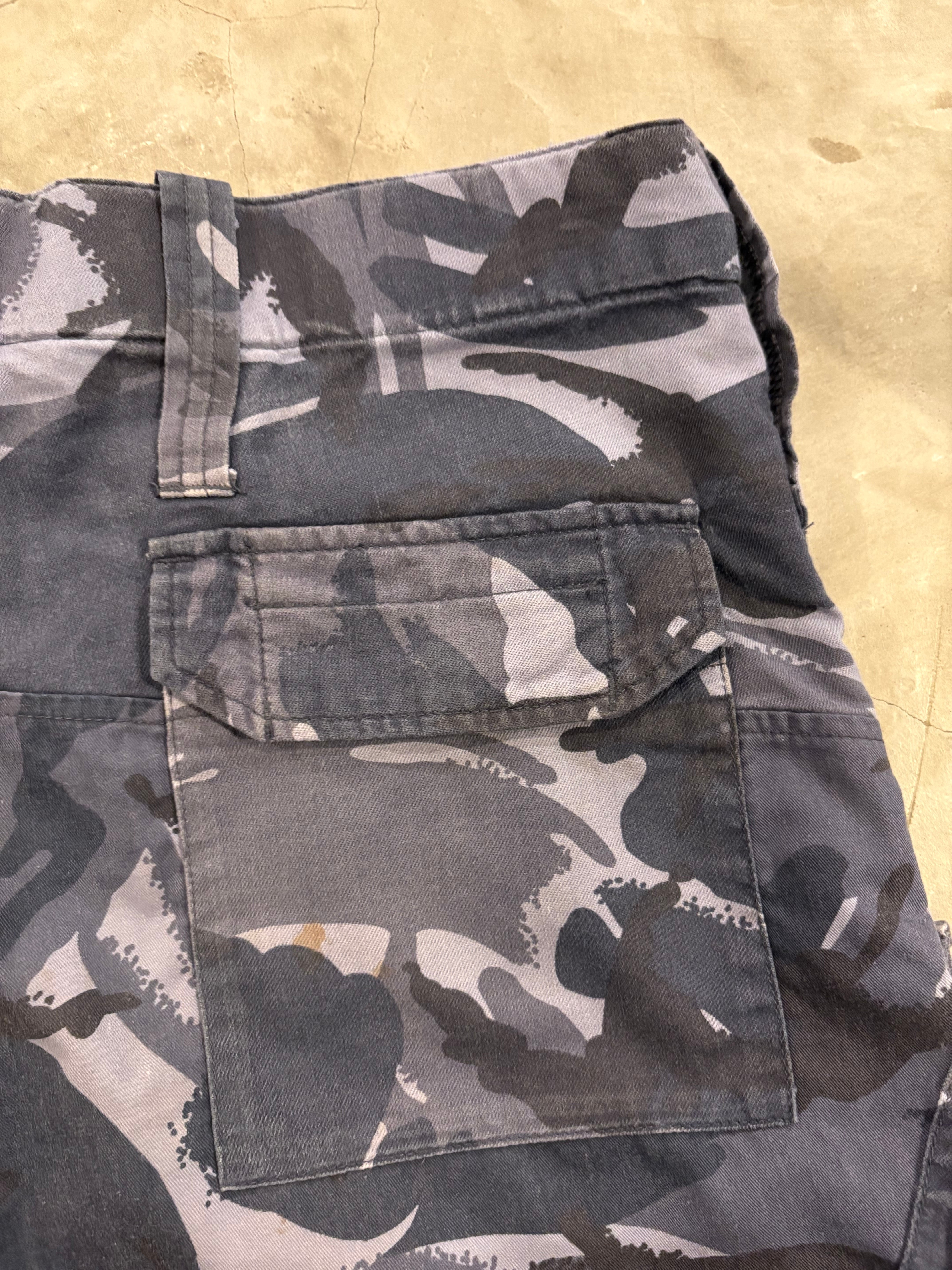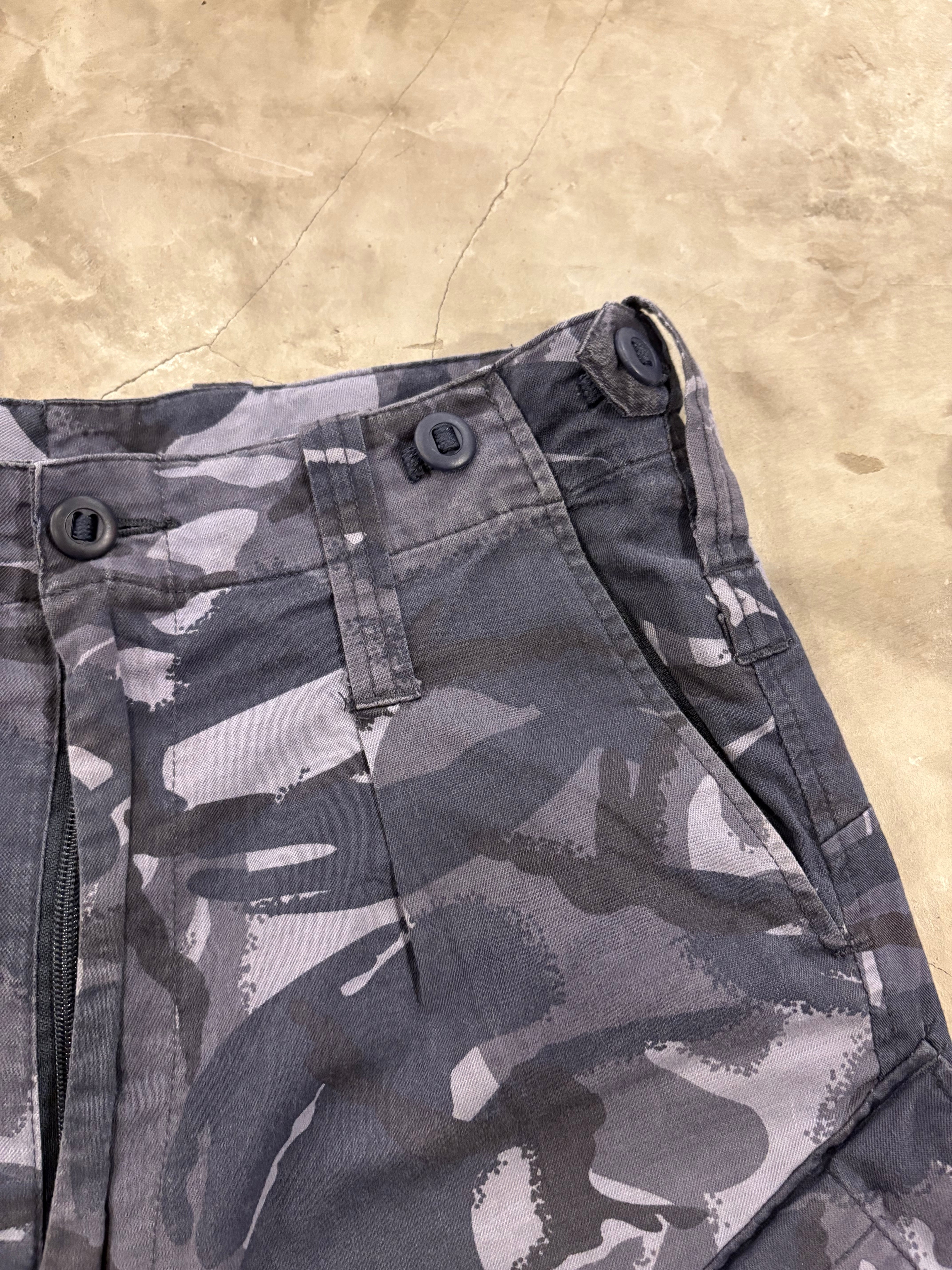 通常の迷彩にはない落ち着いたトーンですので、普段迷彩を着ない方にもおすすめです。形はロイヤルネイビーのカーゴパンツと同等の作りで、斜めサイドポケットやウエストサイドにアジャスターもついてます。裾にドローコードがありますので、裾を絞って穿くのもおすすめです。