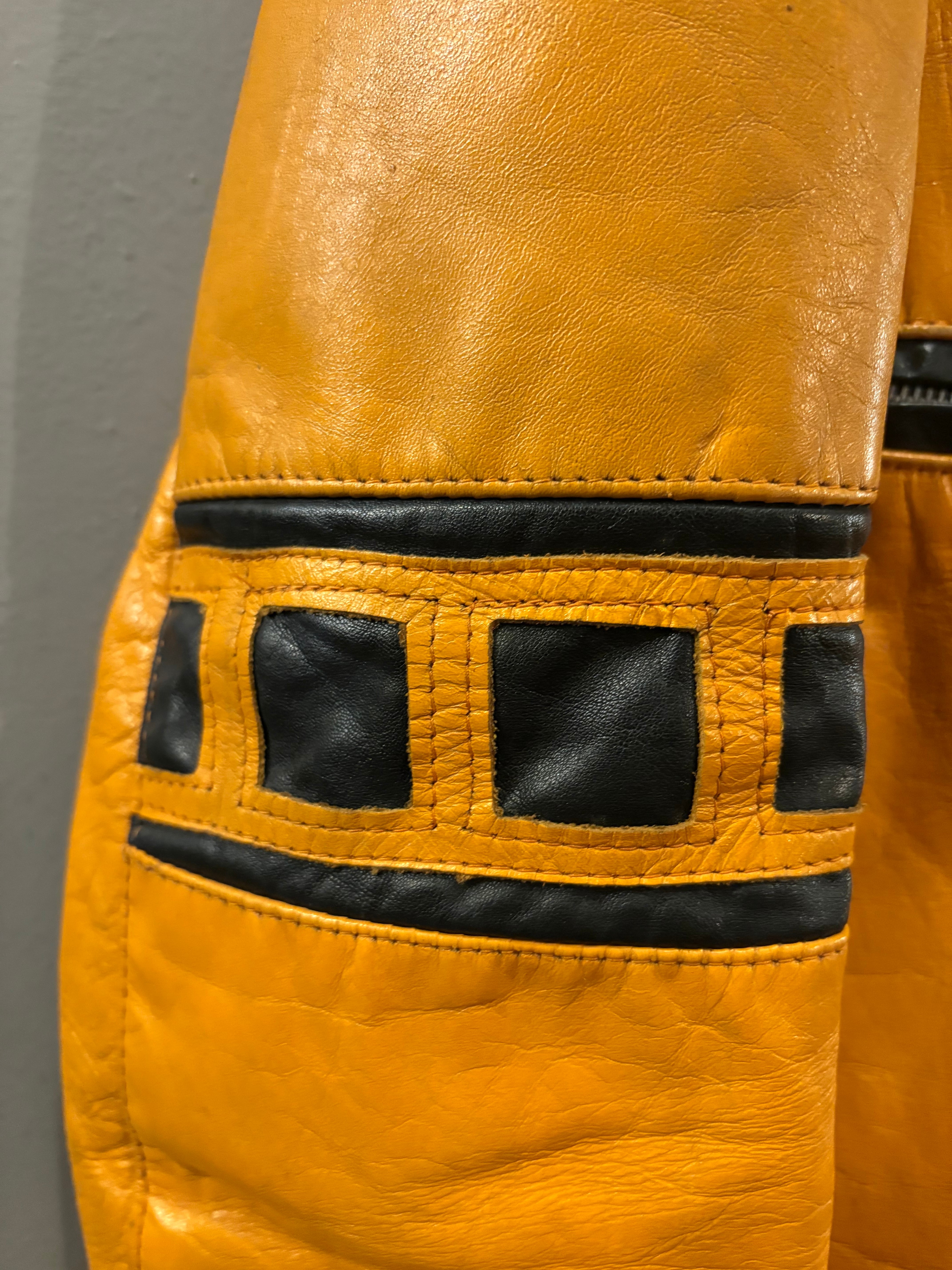 レーシングジャケットなだけはありしっかり肉厚なレザーでタイトめなシルエットになっています。