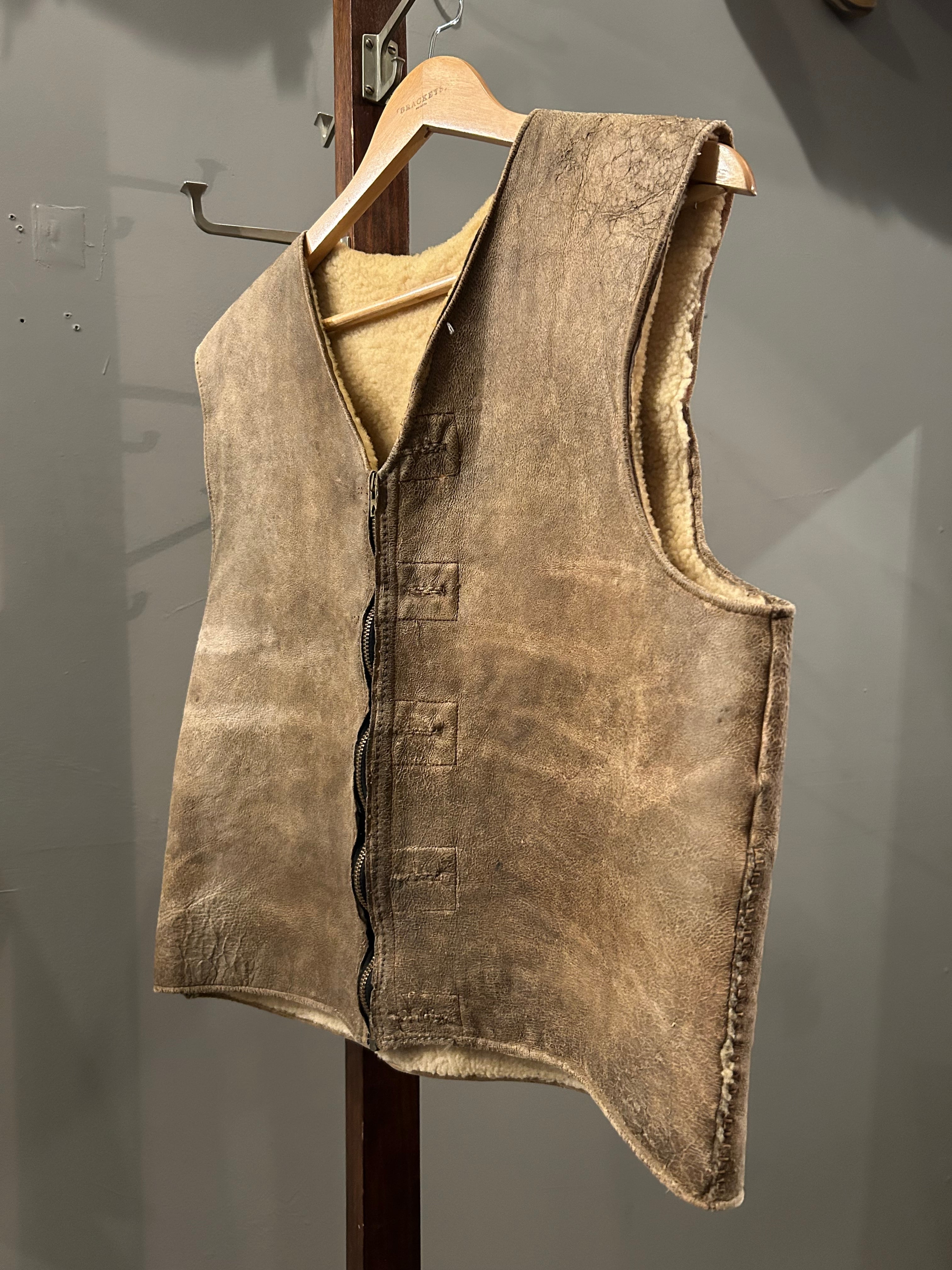 こちらは推定1950−60年代のものです、ミリタリーかなどの細かい情報は不明ですが、スウェードレザーにボアの裏地で雰囲気が抜群。元はボタンで止めていたようですがECLAIRジップでモディファイされています。