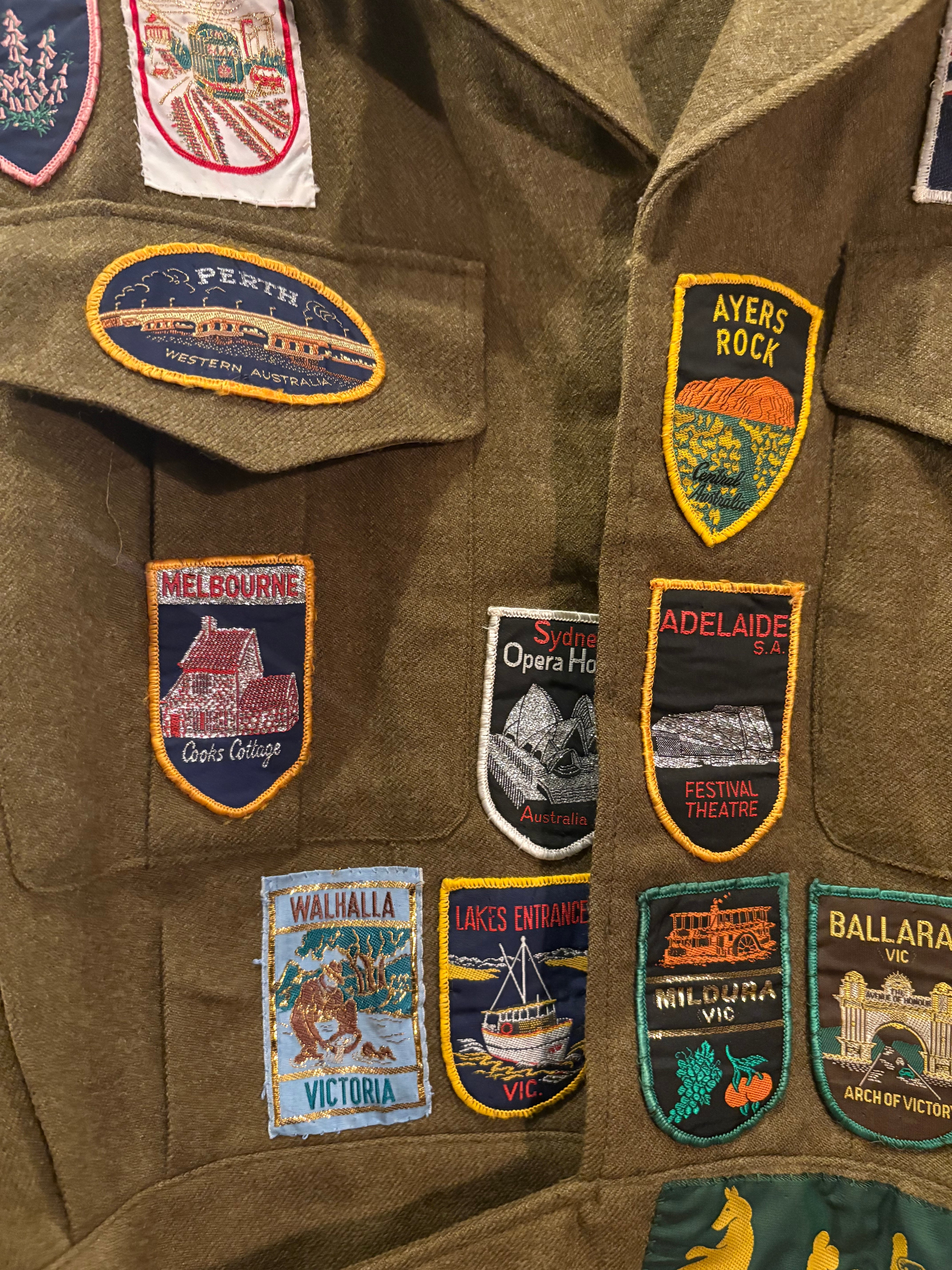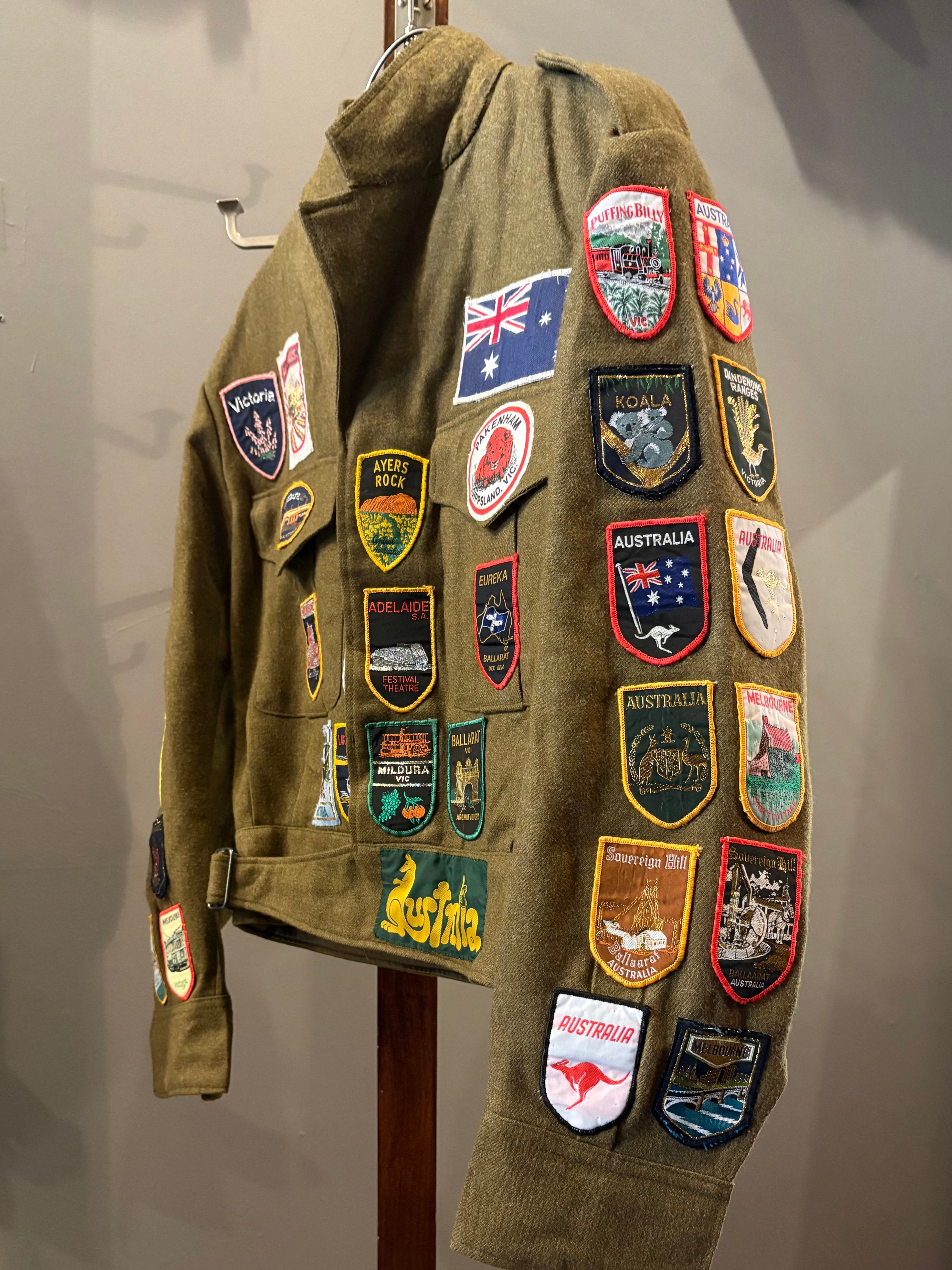 イギリス軍のウールバトルドレスにパッチカスタマイズされたアイテムで、パッチを見てみると前の持ち主の方はおそらくオーストラリアの方だったのかなと思います。ミリタリーの無骨さを、パッチカスタムでファッショナブルに。古着らしい1着ですね。