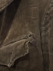 太畝で肉厚なコーデュロイ生地、それでいて重みのある動物ボタンにハンティングの特徴でもあるゲームポケット、雰囲気も相まってとても格好いいアイテムです。この年代のコーディロイは、もっちりとした柔らかい肌触りに少し光沢のある雰囲気が唯一無二ですね。裏地のチェックもデザインとして効いてます。