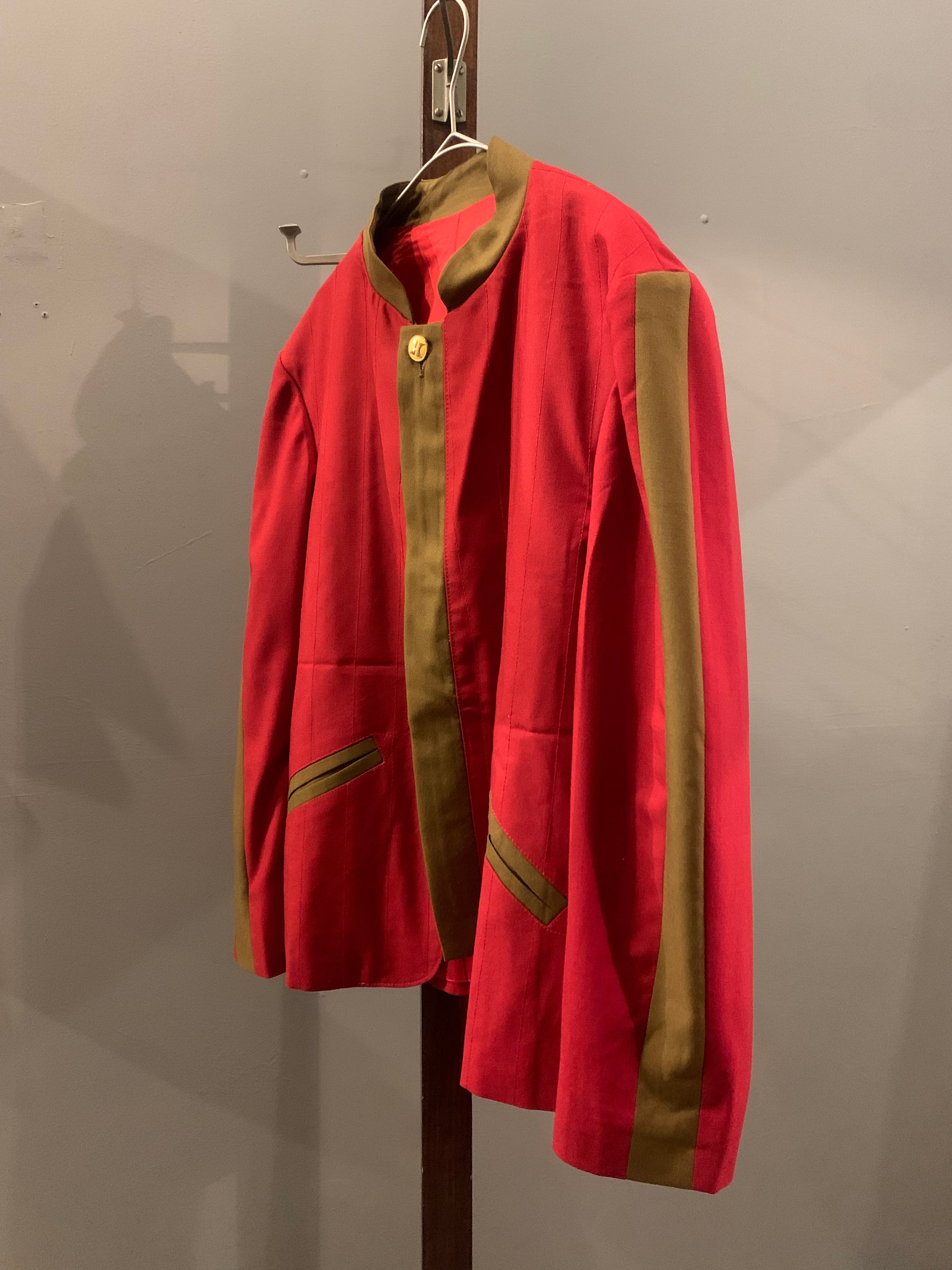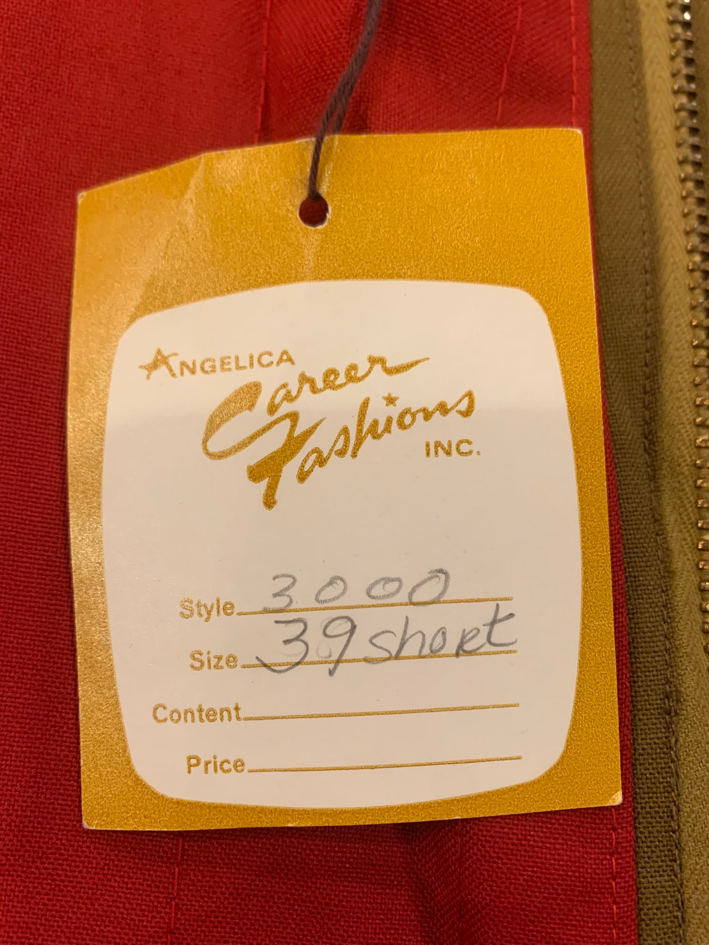 おそらく1960年代頃のもので、タグ付きのデッドストックです。アメリカらしい派手な配色と、レーヨンギャバジンの質感が存在感を引き立てます。フロントには均等にステッチがあしらわれていて脇下にはベンチレーションがあり、作り込まれたジャケットです。エポレットが取られているので着やすいかと思います。珍しいアイテムかと思いますので是非。