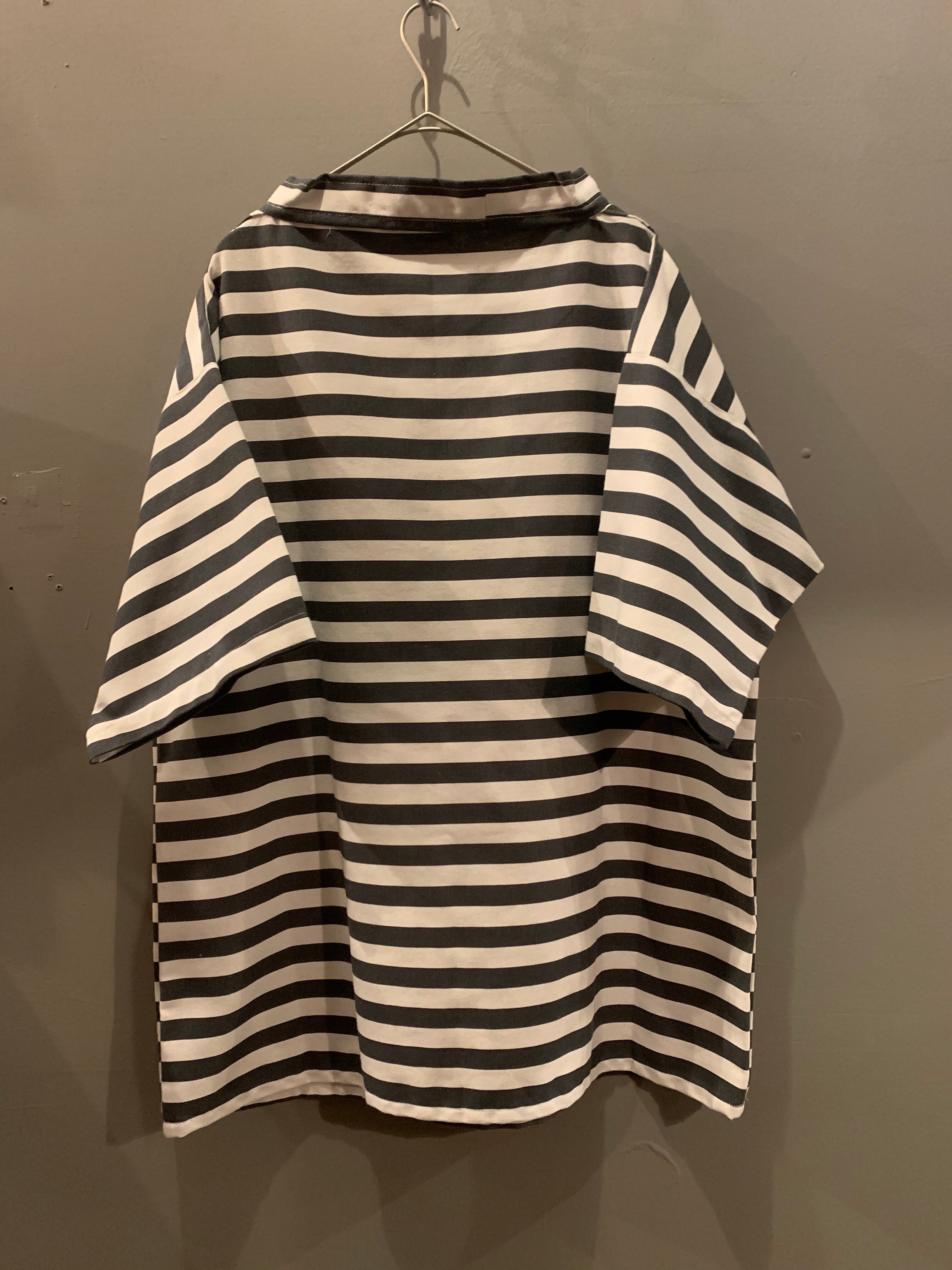 脱ぎ着しやすい様に首元が開けたデザインや、ワークウェアらしいオーバーサイズでボックスシルエットな形が、スタイルに存在感をプラスしてくれます。通常のボーダーTシャツをこちらのアイテムに置き換えるような感覚で、楽しんでみてください。