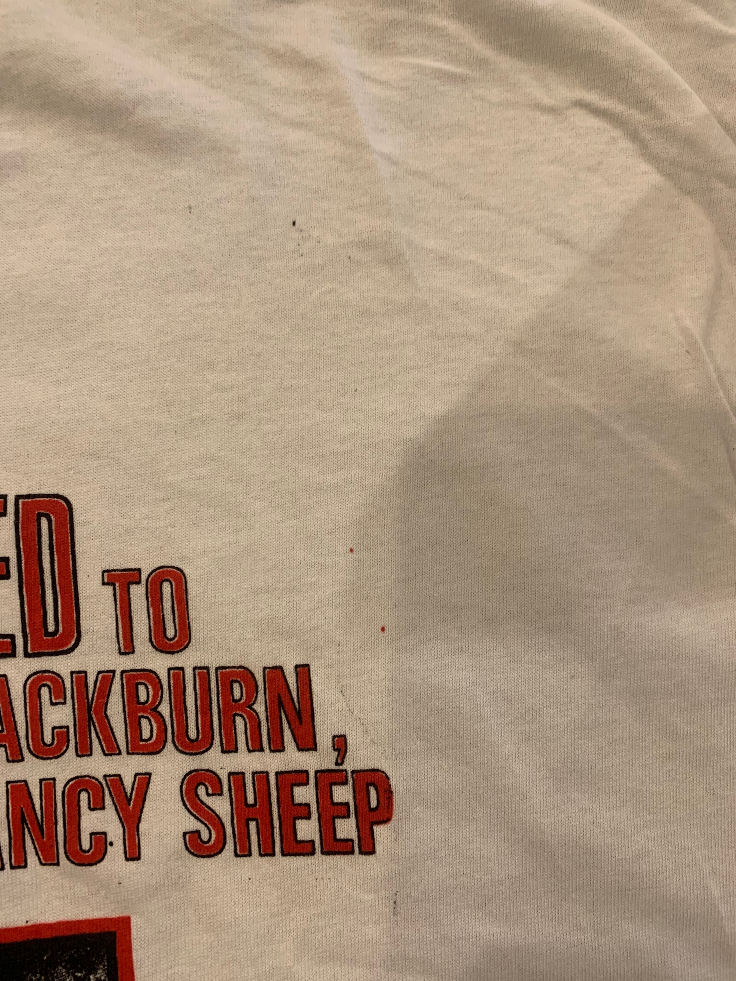 ボディの詳細はタグが切れてしまっているのですが、おそらくSCREEN STARSのユーロボディかと思います。生地感はやや薄めですが、他のフットボールTシャツと比較するとしっかりしております。袖と裾共にシングルステッチです。ほぼ未使用かと思いますので、まだまだ着ていただけます。