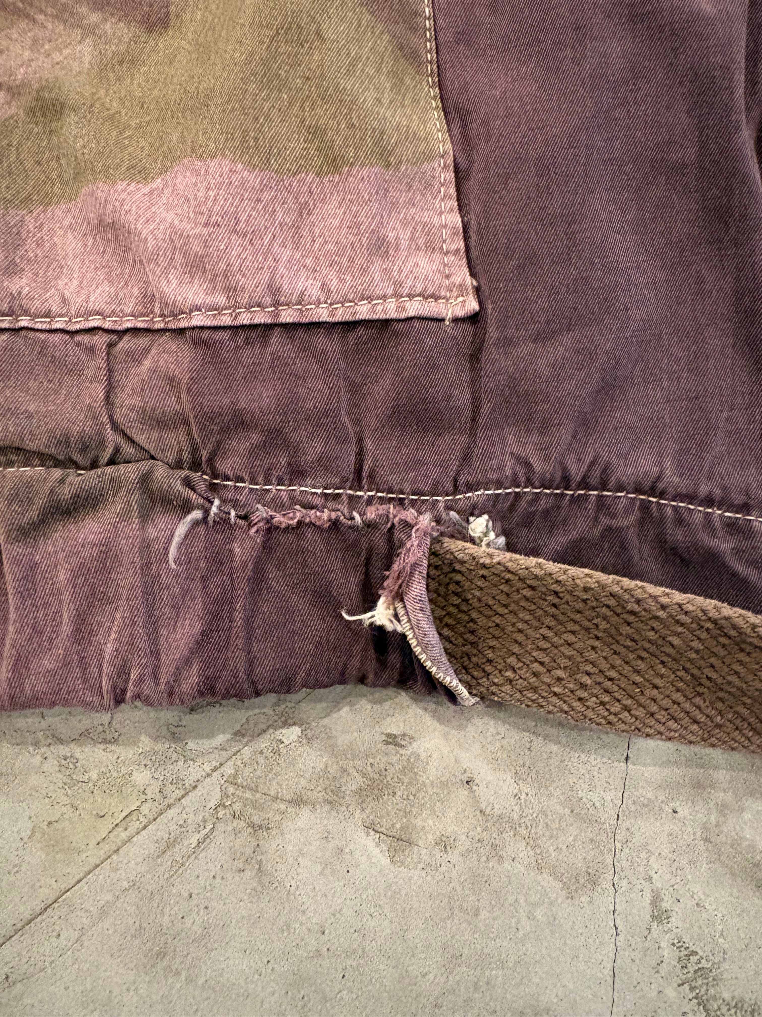 もう一つ、この迷彩の魅力はなんと言っても経年変化かと思います。鮮明な色彩が使い込むことで少しずつ馴染み、ピンクの発色が強くなる印象です。生地感も柔らかく少し光沢があるような、目の詰まったコットンの風合いが魅力的な1着です。お探しだった方は是非、その経年変化を味わってみてください。