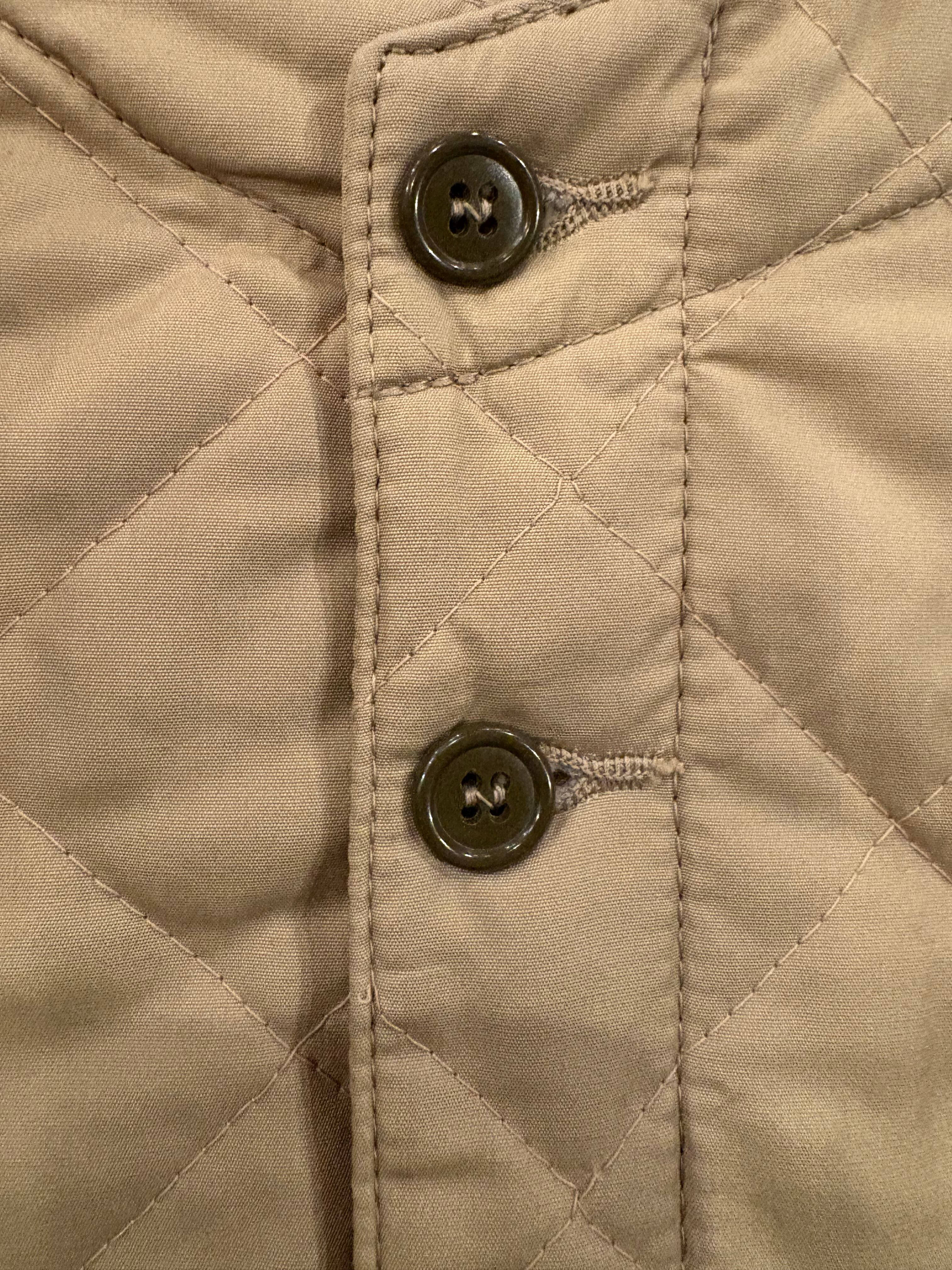 キルティングなので暖かくて軽いです。春先や秋口は中にTシャツを着てライトアウターとして、冬はライナー本来の使い方としてアウターの下に仕込んだり、中にニットやタートルネックを着たりと様々な着方ができるアイテムです。着れる時期が長いのはいいですね。ミリタリーにもライナージャケットは色々とありますが、こちらは特におすすめです。